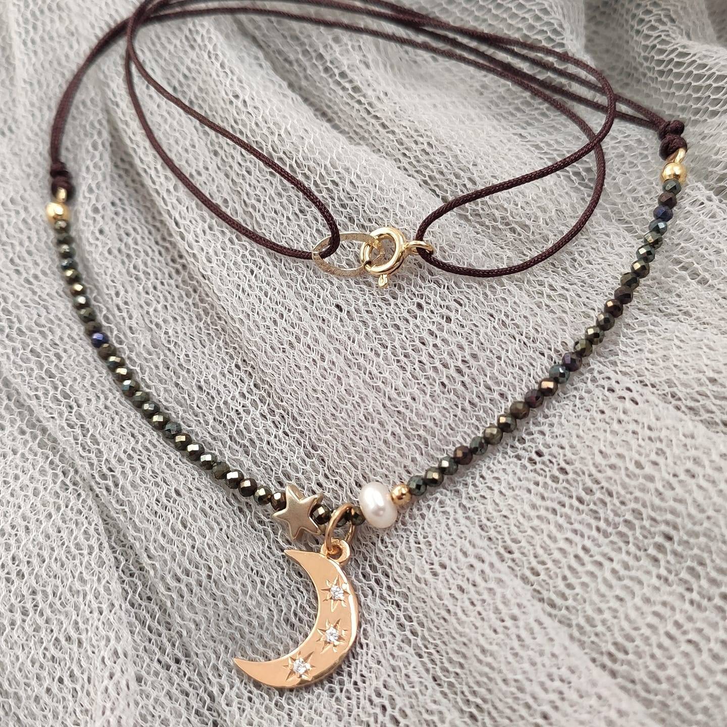 Gargantilla LolaLolae de plata IP rosa, piedras naturales y ojo turco