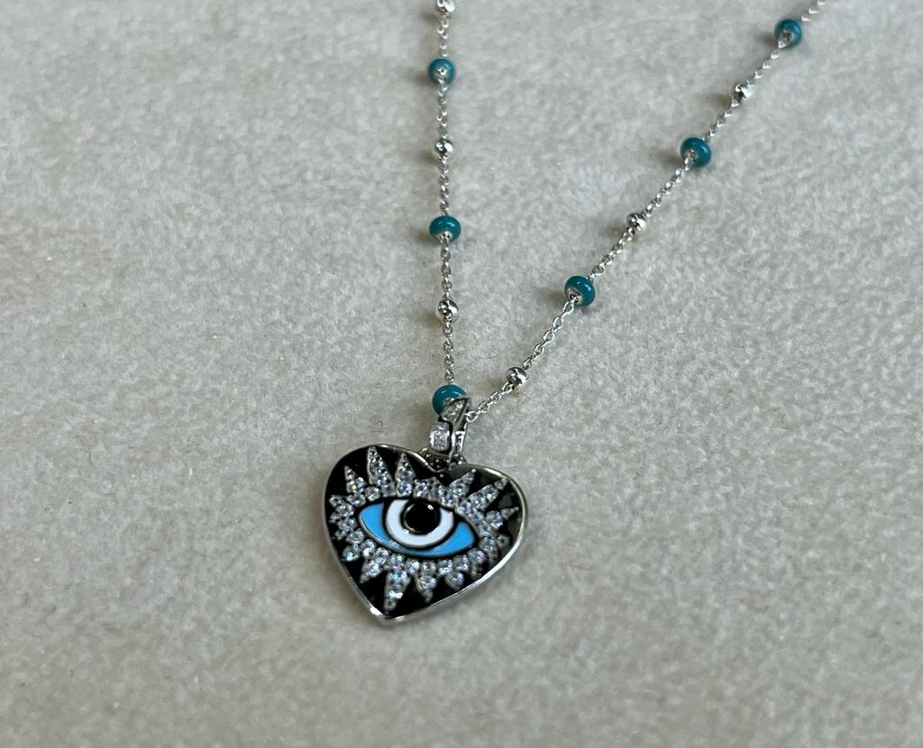 Colgante de corazón con ojo + cadena de plata