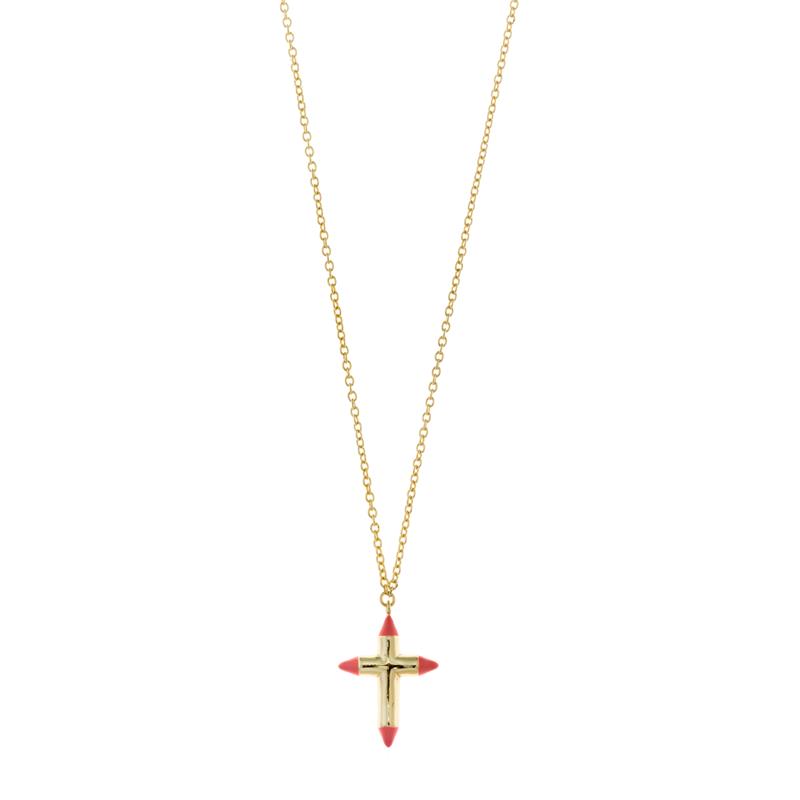 Gargantilla Mujer Cruz Plata Baño Oro y Esmalte Coral SALVATORE 213C0138