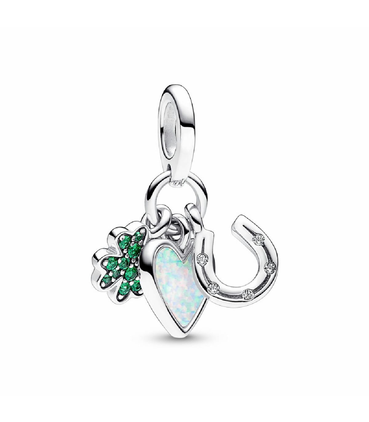 Charm Pandora Colgante Triple Trébol de Cuatro Hojas, Corazón y Herradura 792755C01