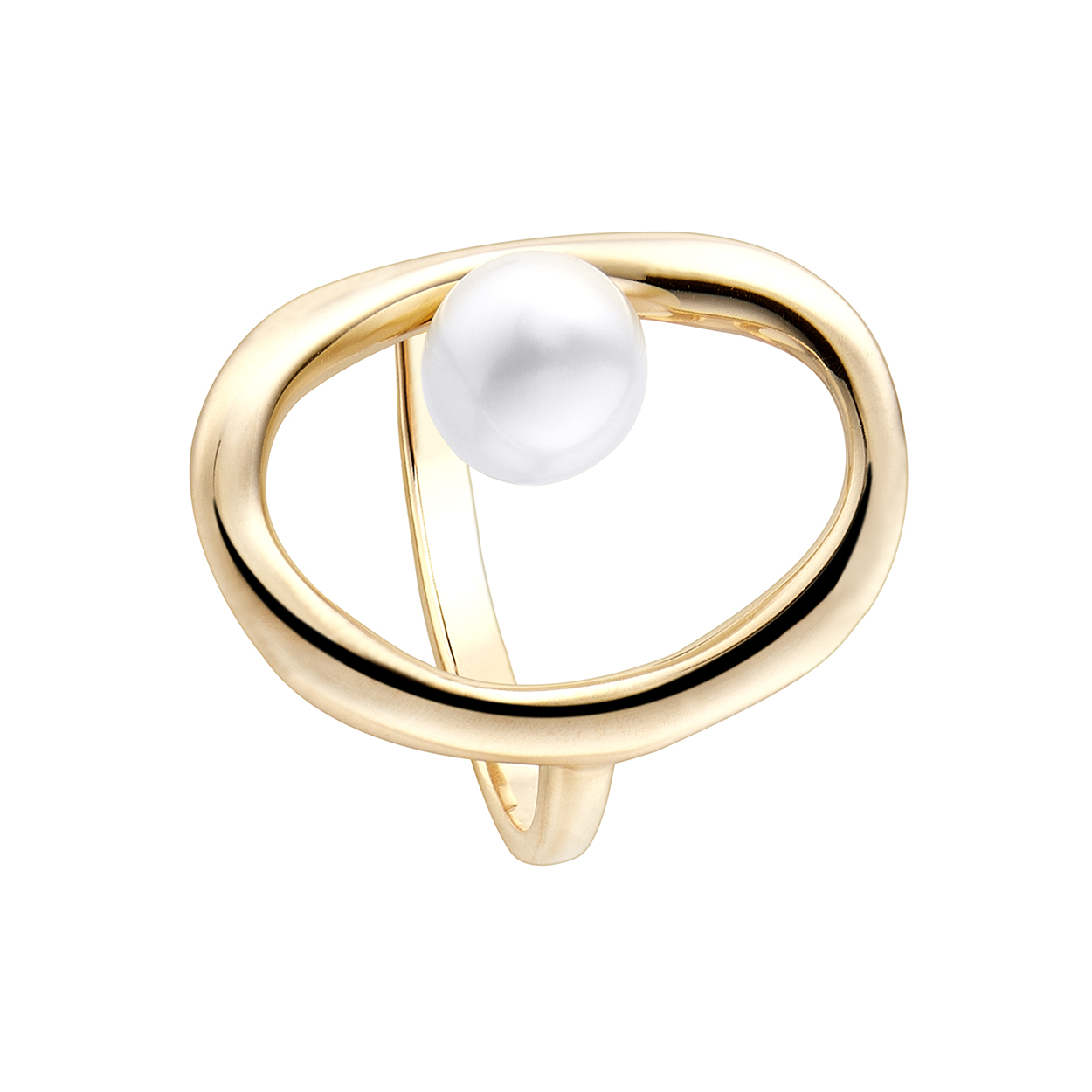 Anillo abierto oval Durán Exquse de la colección CoCo con perla desplazada realizado en plata 925 bañado en oro amarillo