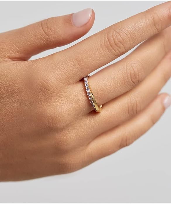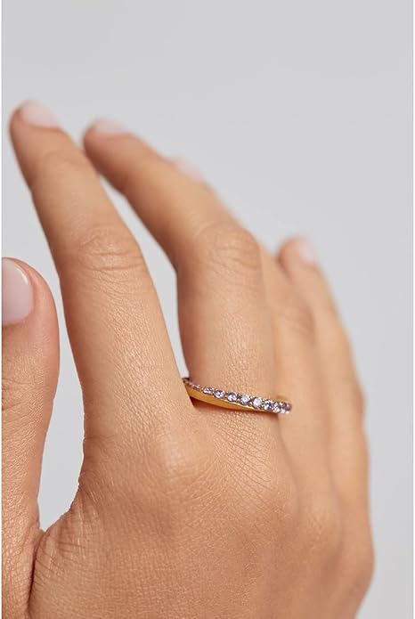 Anillo PdPaola en plata chapada en oro, adornado con circonitas en forma de ola.