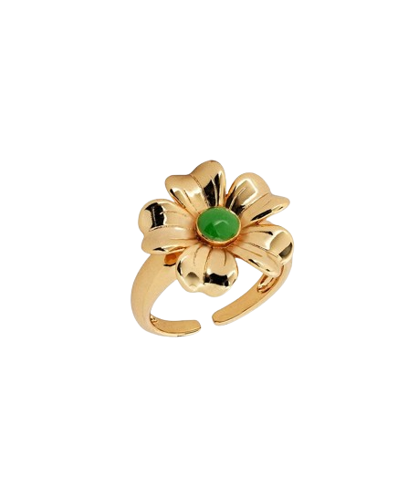 Anillo Verbena diseñado por María G. de Jaime chapado en oro 18kt con Esmalte en tonos Verde. El anillo tiene un rango de medida de 15,9 mm a 19,1 mm en su interior