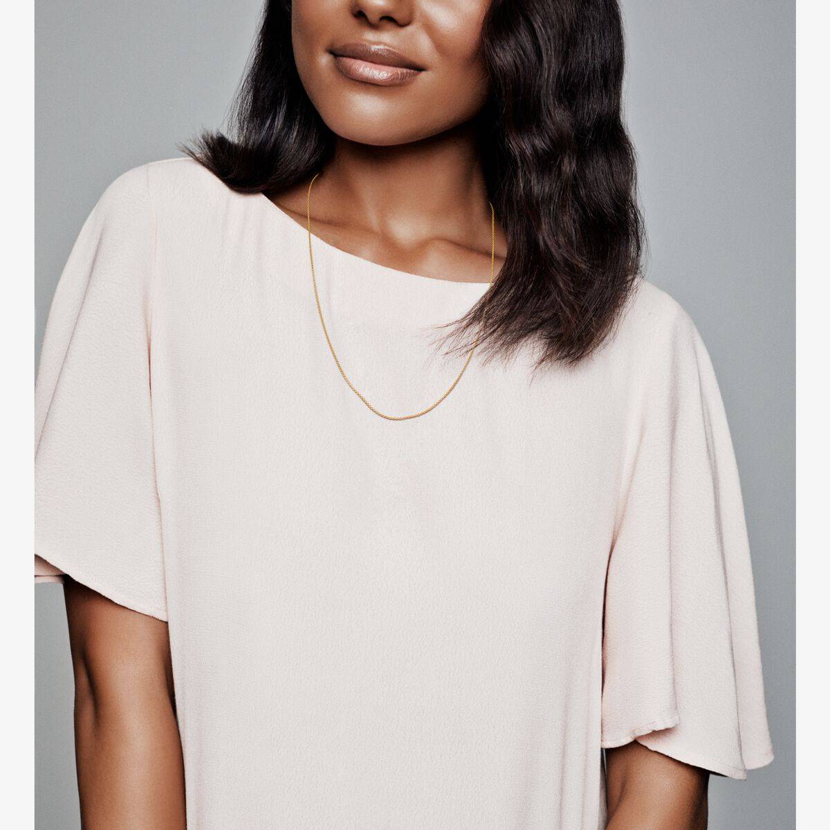 Nuestro clásico Collar Cadena de Cable, recubierto de oro de 14 K, es el portador perfecto para los Colgantes O, así como una pieza versátil para las capas. La longitud ajustable significa que complementa tanto los escotes altos como los bajos.
