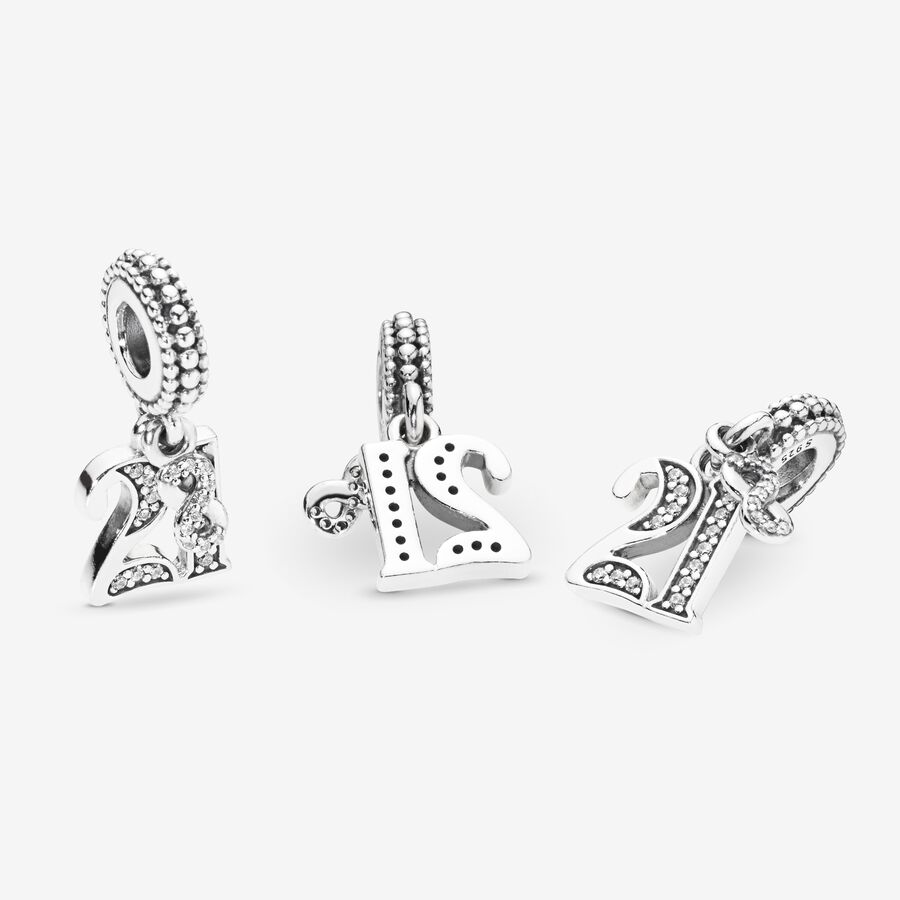 Charm colgante Pandora 21 Años de Amor, adornado con circonitas y detalle de infinito. Envío en 24/48h en toda España.