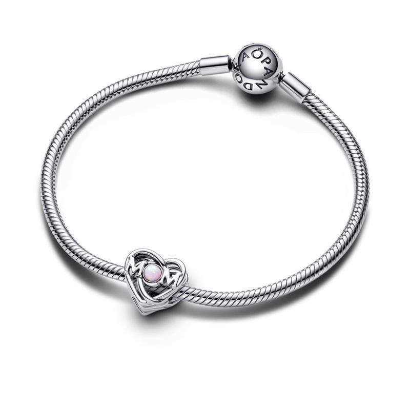 Muestra tu amor con el Charm Filigrana Corazón y Madre, un diseño cargado de sentimientos. Este charm de mamá de Pandora captura la esencia de la maternidad con un corazón en filigrana. Un ópalo creado en laboratorio de color rosa en el centro le aporta un tono elegante además de brillos. Uno de los lados del charm se ha decorado con la palabra «Mum» (Mamá, en español), mientras que el otro se ha decorado con la inscripción «Always knows best» (Siempre lleva razón, en español), un homenaje divertido a la sabiduría que aporta la maternidad.