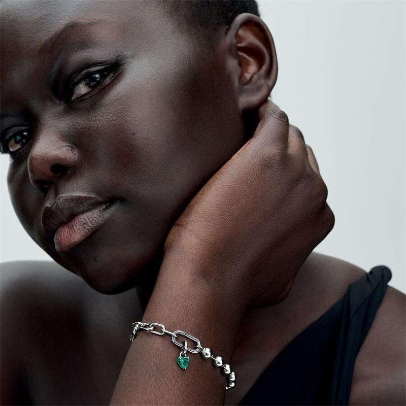Charm Mini Colgante Pandora Me para mujer fabricado en plata de primera ley con un cristal verde en forma de corazón Chakra.