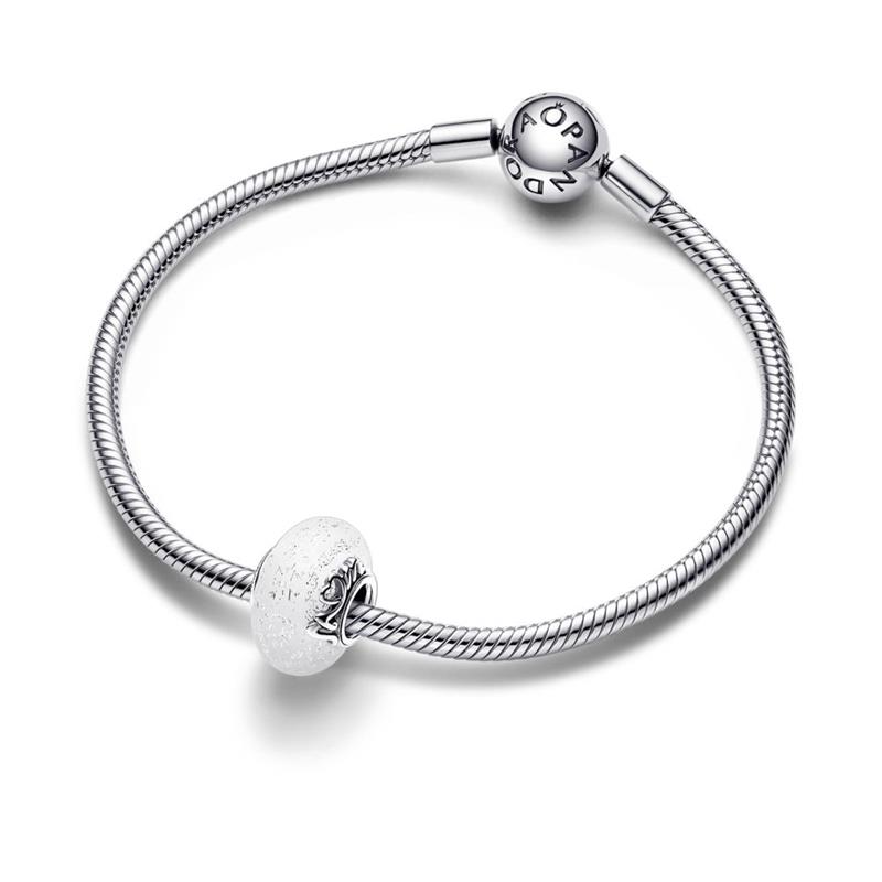 Regala un dulce mensaje de amor a la figura materna de tu vida con el Charm Amor y Mamá en Cristal de Murano Blanco Brillante. Se trata de un charm acabado a mano en plata de primera ley y cristal de Murano de color blanco con un brillante efecto que refleja la luz. Las letras en relieve en plata de primera ley a cada lado del centro del charm dicen «m♥m» y «love» (Mamá y amor) y se presentan con un estilo manuscrito, lo que aporta un toqu