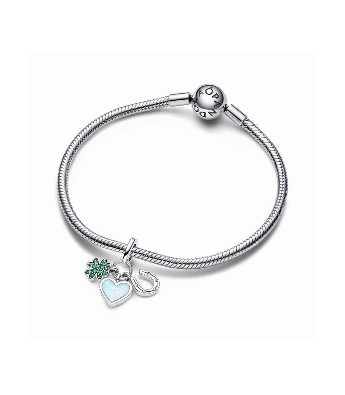 Charm Pandora Colgante Triple Trébol de Cuatro Hojas, Corazón y Herradura 792755C01