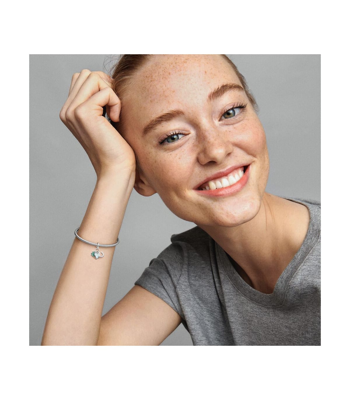 Mantén a la suerte de tu lado con el Charm Colgante Triple Trébol de Cuatro Hojas, Corazón y Herradura. Este charm colgante en plata de primera ley presenta tres símbolos distintos de la buena suerte: un trébol de cuatro hojas, un corazón y una herradura. El corazón se ha decorado con la inscripción «Sisterhood» (Hermandad). Las circonitas cúbicas transparentes que decoran la herradura la hacen brillar, el corazón también brilla con su ópalo blanco creado en laboratorio y el trébol se ha embellecido con cristales de color verde real. Lleva este charm de Pandora Moments como símbolo de buena suerte y protección o regálaselo a alguien que te importe