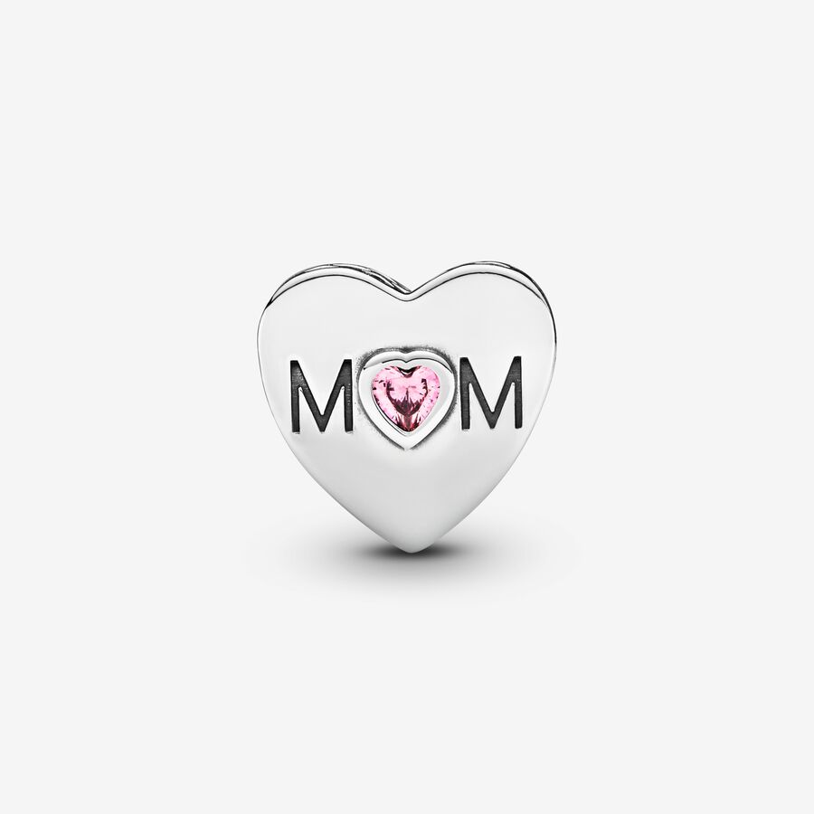 Charm Pandora Corazón de Madre en plata de ley y adornado con circonitas cúbicas transparentes.