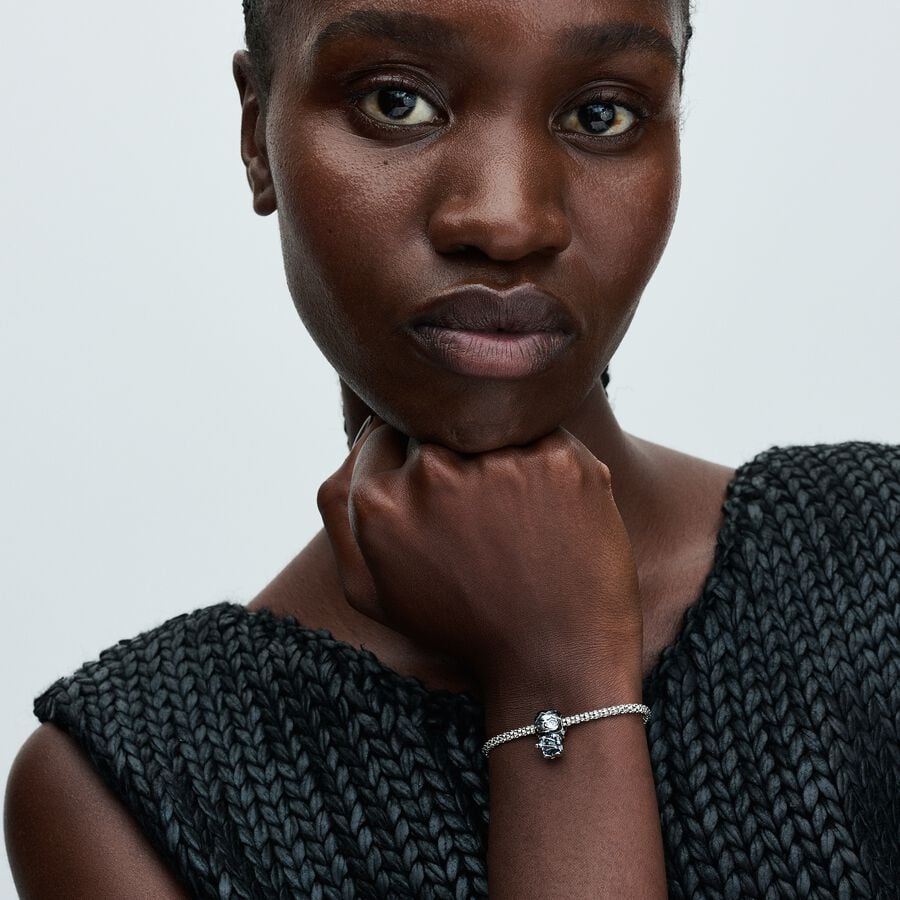 Lleva contigo la lealtad de tu casa con nuestro Charm Jon Snow de Juego de Tronos. Fabricado en plata de primera ley, el charm representa a Jon Snow con sus rasgos característicos, incluyendo la cicatriz en el ojo izquierdo, el bigote, su cabello rizado oscuro y su icónica capa con piel alrededor del cuello. Los detalles se resaltan con esmalte aplicado a mano que aporta profundidad de color. También lleva una espada con la cabeza de un lobo, el sello de lealtad y valor de su familia. Llévalo para apoyar al Rey del Norte o regala este charm de Juego de Tronos x Pandora a alguien especial.
