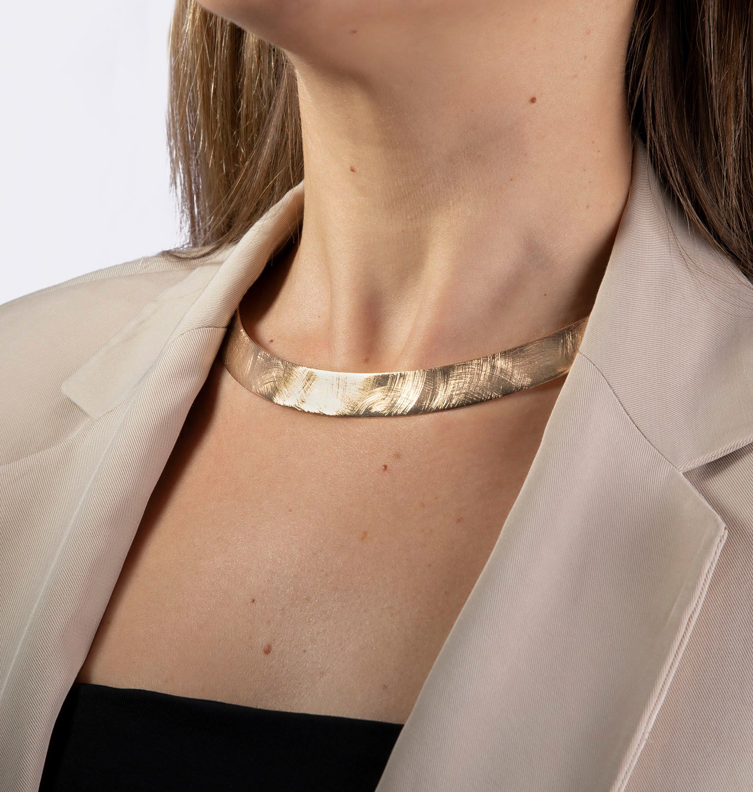 Choker Colección Textures acabado Oro 18kt Rígido Rayado que por su forma se ajusta totalmente al cuello. Vidal & Vidal te ofrece Joyas y Accesorios perfectas para cualquier ocasión.