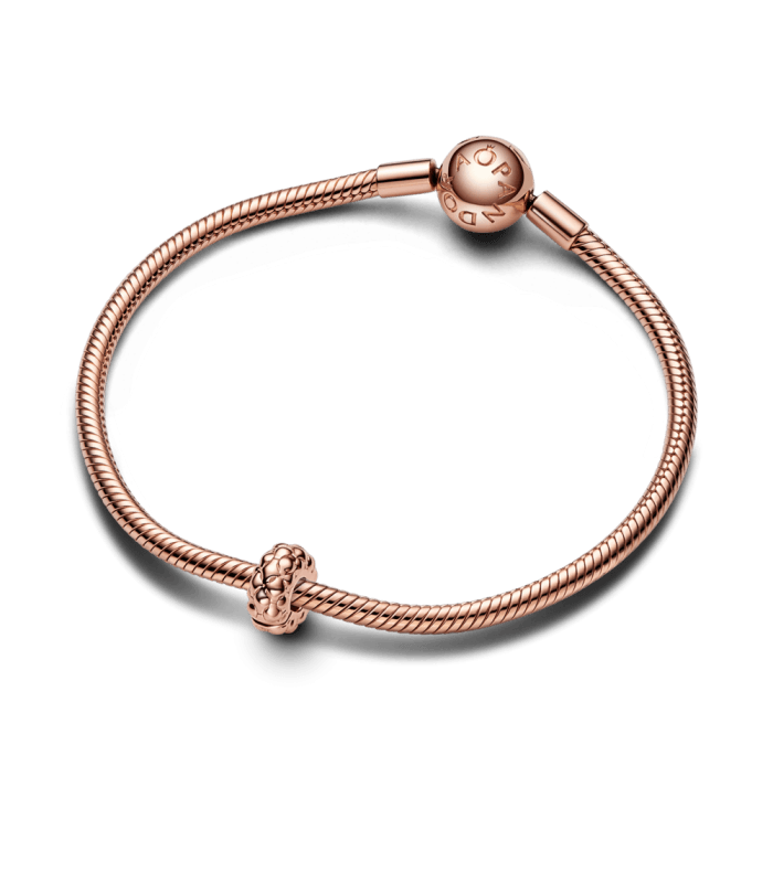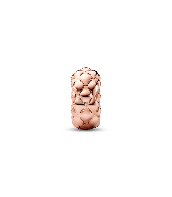 Potencia aún más tu estilo con la icónica textura del Clip con Tachuela Fino. Con su textura de tachuelas esféricas y piramidales y un fino perfil, este clip creado en nuestra aleación única de metales con un recubrimiento en oro rosa de segunda ley de 14k será perfecto para tu pulsera de cadena con tachuelas ya que su diseño refleja el nuevo icono de Pandora. El clip con un recubrimiento en oro rosa de 14 k posee agarres de silicona en su interior y no se puede llevar en las roscas, por lo que permanecerá fijo en su posición en la pulsera mientras te mueves, separando además tus charms. Crea un llamativo diseño de camuflaje llevándolo en la cadena con tachuelas.