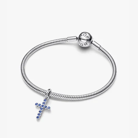 Recién llegado / Colgante Pandora de cruz en plata de ley con cristal azul estelar 794063C01