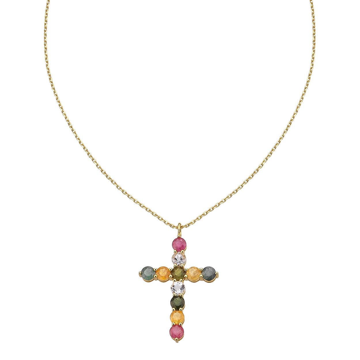 Colgante de Durán Exquse de la colección Amuletos de plata dorada con turmalinas. Cadena de plata bañada en oro con cierre de mosquetón. 45+5 cm de longitud