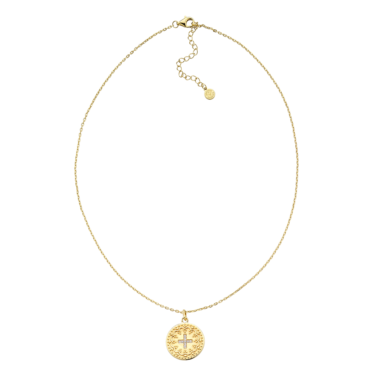 Colgante + cadena de plata dorada Camelot de Durán Exquse medalla con cruz. 40 + 5 cm de longitud