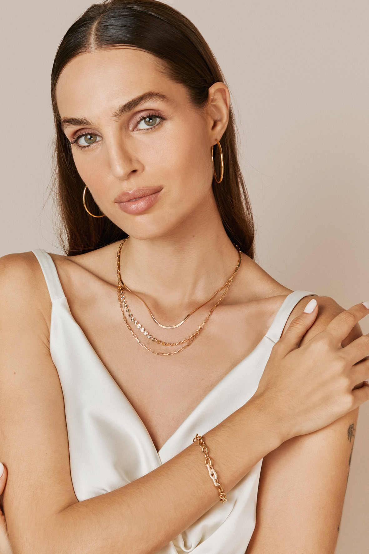 Colgante de Durán Exquse de la colección Links de plata dorada mezcla de cadenas. 40+5 cm de longitud