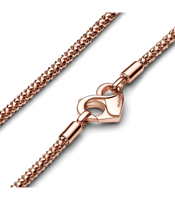 Collar Pandora baño oro rosa 14k tachuelas 382451C00. Collar Pandora Moments con un recubrimiento en oro rosa de 14k Cadena con Tachuelas.