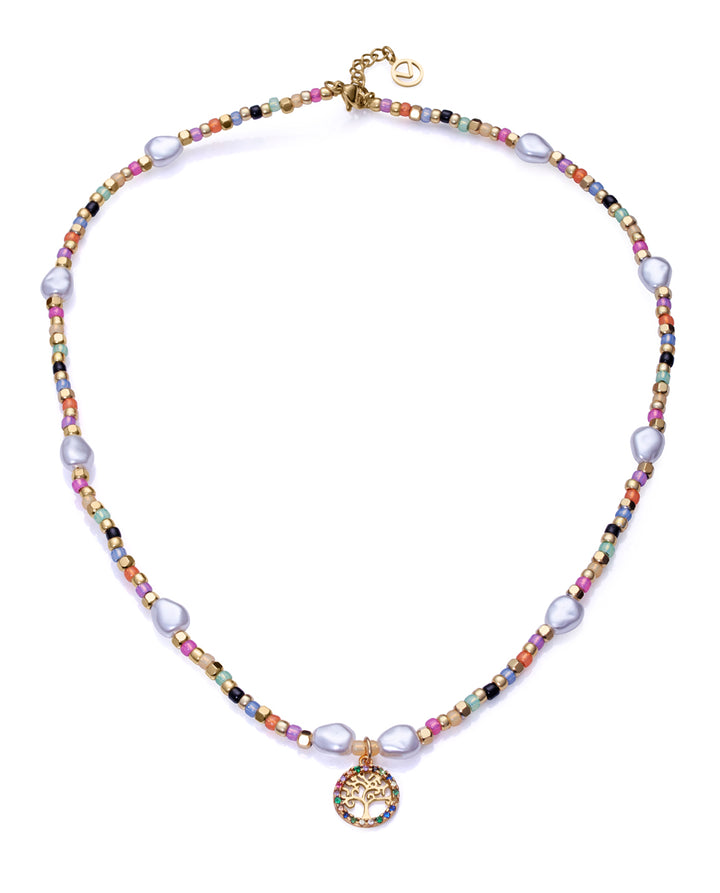Un colorido collar de cuentas con un dije del árbol de la vida, completado con unas hermosas perlas sintéticas. Una femenina pieza con una longitud de 42 cm para presumir y llenar de color tu look. Tienes ante ti mil y una combinaciones posibles. Pero todo empieza por conseguirlo en este momento, solo en Viceroy. Longitud: 42 cm.