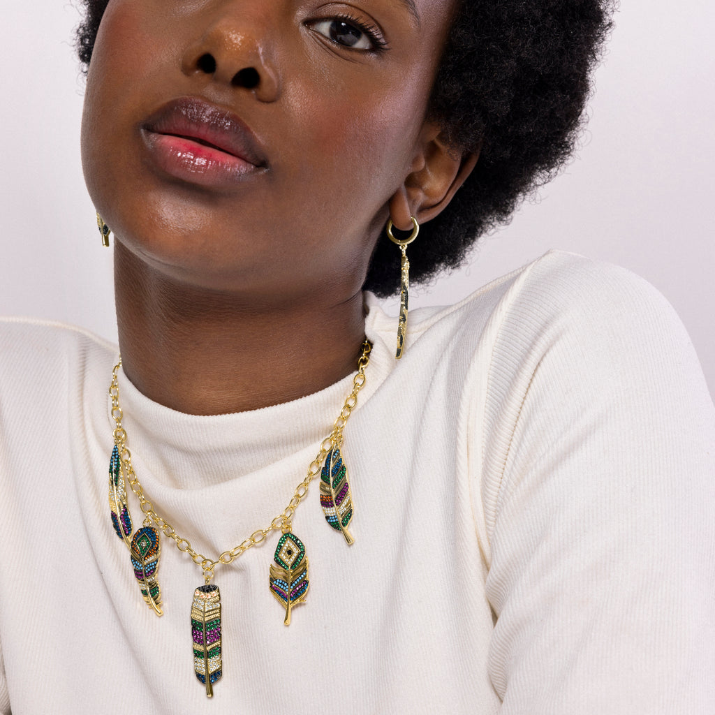 Collar Muisem de Circonita Multicolor acabado en oro amarillo de 18k. El estilo Boho es una estética de espíritu libre que mezcla diferentes culturas y expresiones artísticas en un estilo ecléctico con énfasis en los elementos orgánicos y la naturaleza.