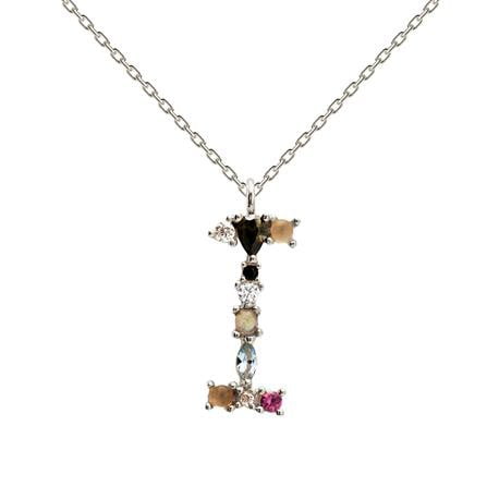 Collar de plata con letra I. Hecha artesanalmente, cada letra es tallada a mano al igual que sus piedras son engastadas manualmente sobre una base de plata. Un collar caracterizado por su exclusividad y que realza lo especial que eres tú o tu ser querido.