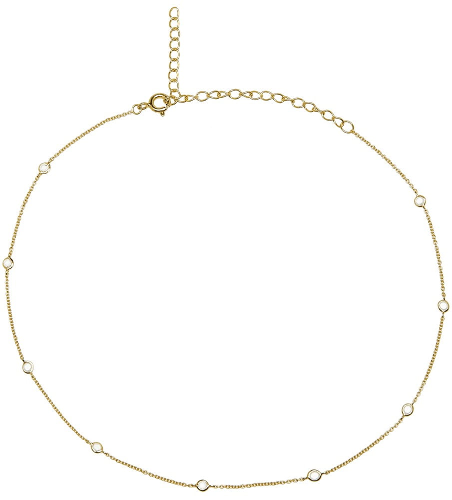 Esta delicada pieza es el complemento perfecto para tu día a día. Una cadena de plata de ley 925 bañada en oro de 18 quilates crea una cenefa perfecta junto a bellas circonitas de doble cara. Consigue el collar Violet Gold cuya versatilidad te permitirá usarlo como gargantilla o choker.