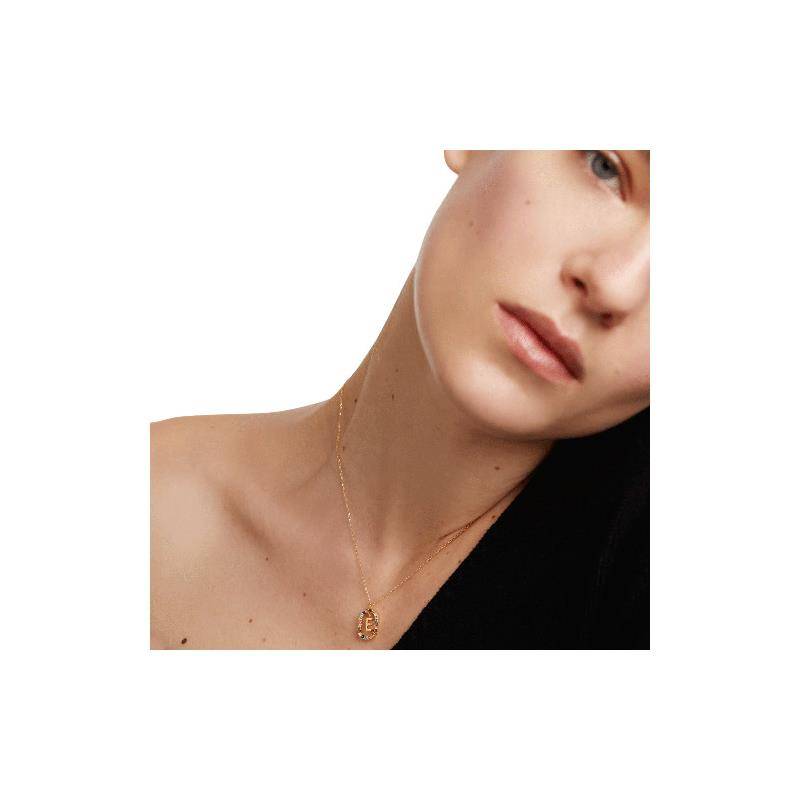 Collar P D Paola Letra E CO01-264-U con una inicial rodeada de piedras semipreciosas engarzadas a mano y fabricado con Plata de Ley 925 como material base y un baño de oro 18k.