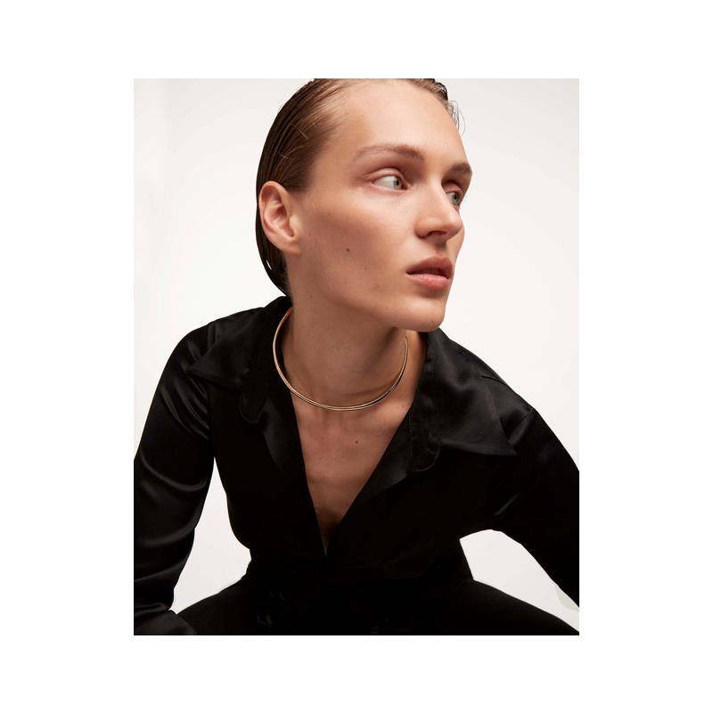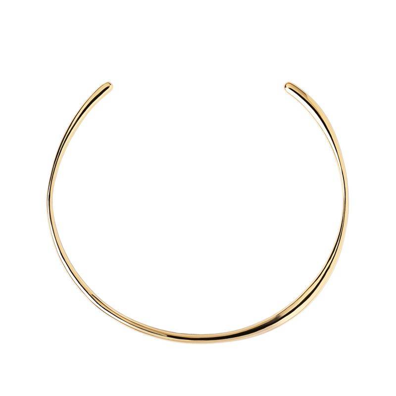 Collar PdPaola Pirouette fabricado en plata bañada en oro. Se trata de un atrevido collar rígido liso abierto por sus extremos.
