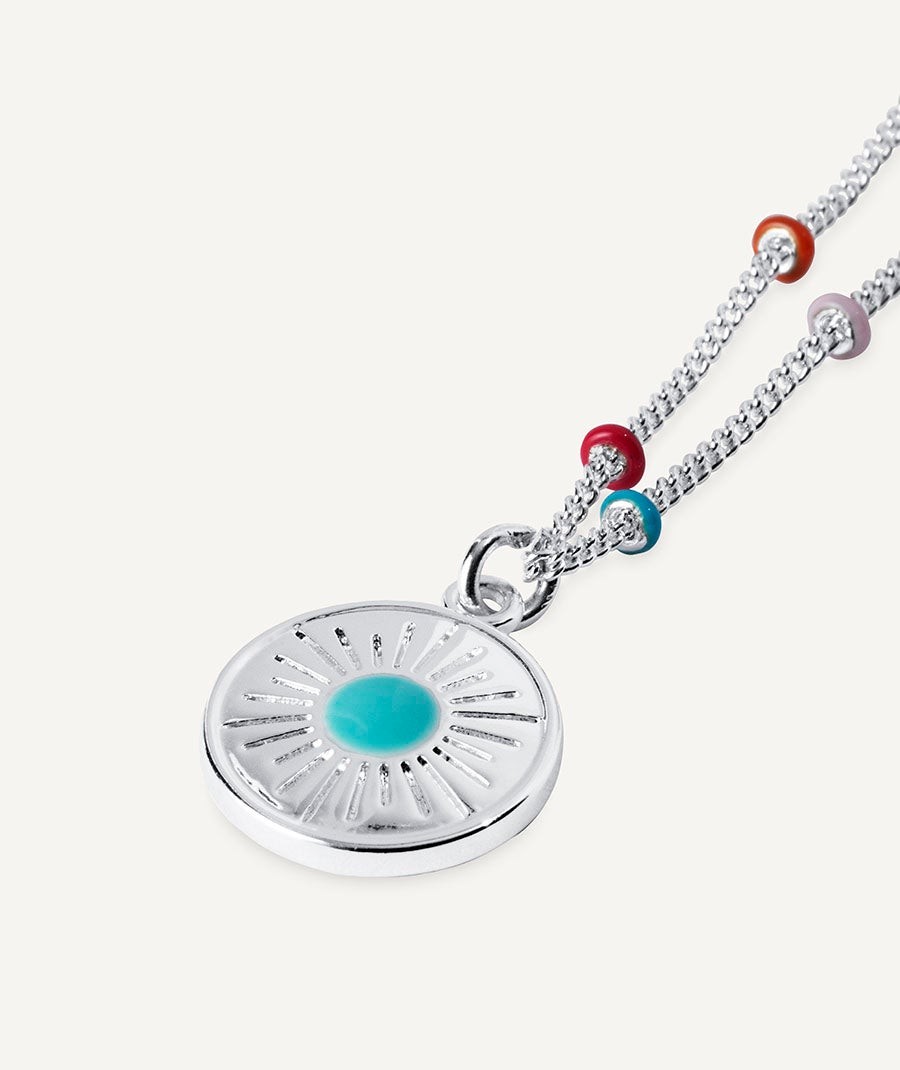 Collar Caramba Multicolor chapado en Plata de primera ley. Este collar viene con una cadena ajustable de 39 + 5 cm.