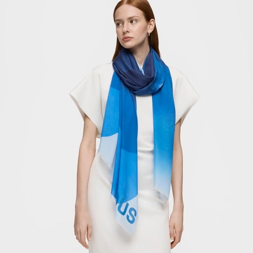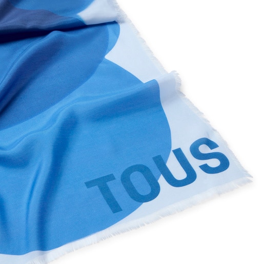 Foulard de viscosa y modal TOUS Blurry Bear en color azul. Composición: 50 % modal, 50 % viscosa. Medidas: 200 x 90 cm.