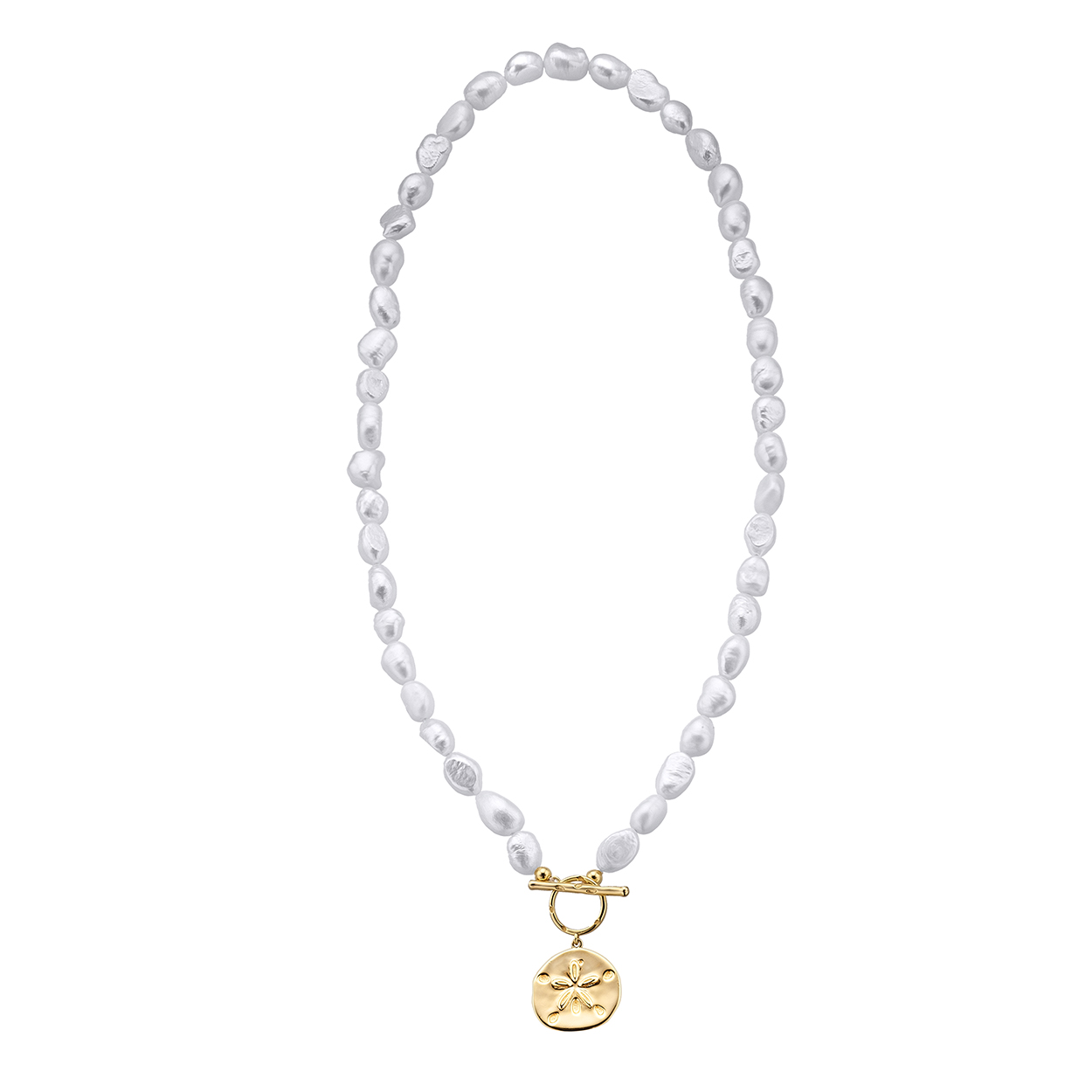 Gargantilla Durán Exquse realizada en plata 925 bañada en oro de la colección Coco con perlas barrocas. 48 cm de longitud