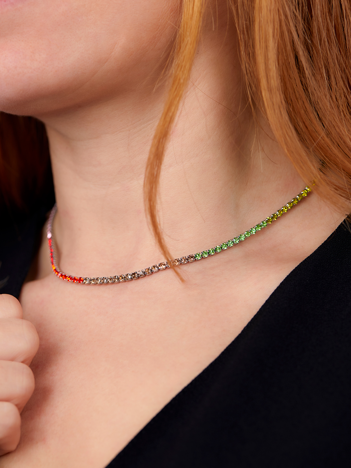 Gargantilla Marea Tenis en plata con circonitas multicolor en formato Riviere.
