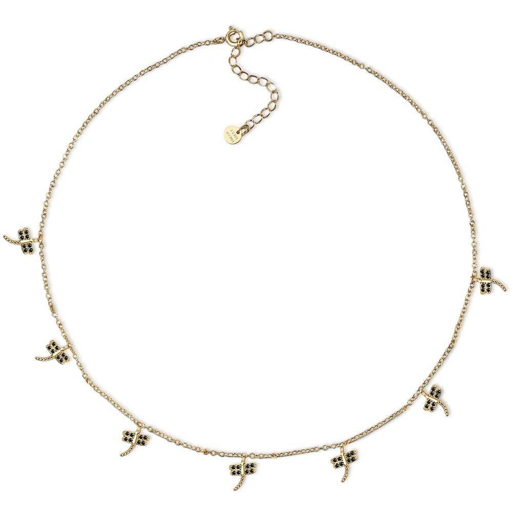 Gargantilla plata chapada en oro con charm mini libélulas. Largo de la gargantilla 38 + 5cm.