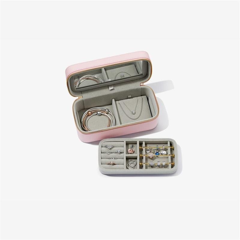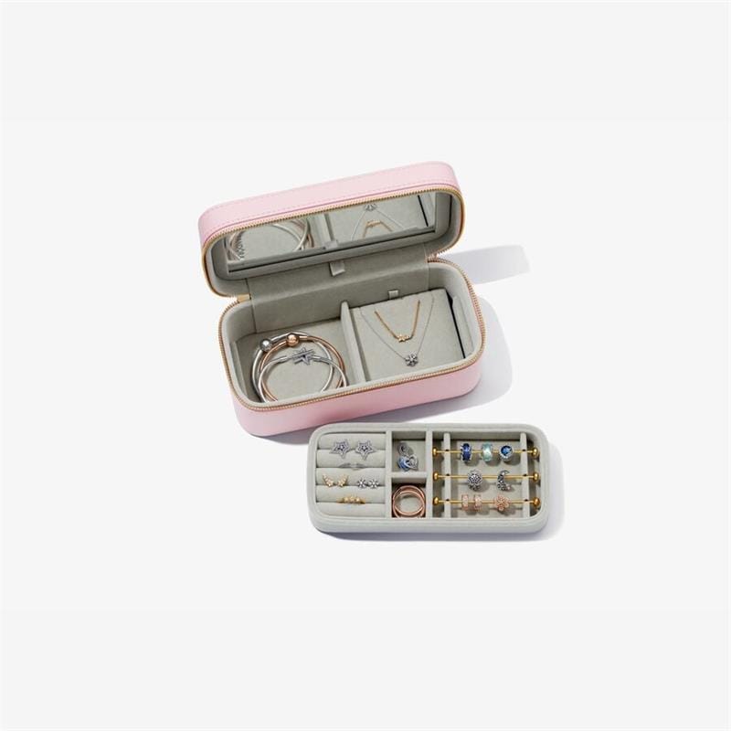 Joyero Pandora en tamaño pequeño ideal para guardar tus joyas Pandora diseñado para organizar y proteger tus joyas. El joyero está compuesto de diversos compartimentos separados y forrados de tercio pelo para almacenar las diferentes joyas. Este joyero cuenta con bandeja superior desmontable para charms, anillos y pendientes y una pieza plana para collares con compartimento debajo para pulseras. Su cierre exterior es de cremallera.