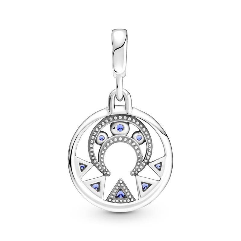 Lleva contigo la luz de la luna a todas partes con el Medallón Poder de la Luna de Pandora ME. Acabado a mano en plata de primera ley, el medallón representa el empoderamiento femenino con una luna orientada hacia abajo y decorada con cristales azules con talla brillante. Con una sencilla anilla con cierre de clic, lleva el tuyo en tus links cerrados y tus conectores decorativos que se pueden abrir de Pandora ME, así como en pulsera de eslabones, collares y aros para dar a tu look un toque espiritual e intuitivo.
