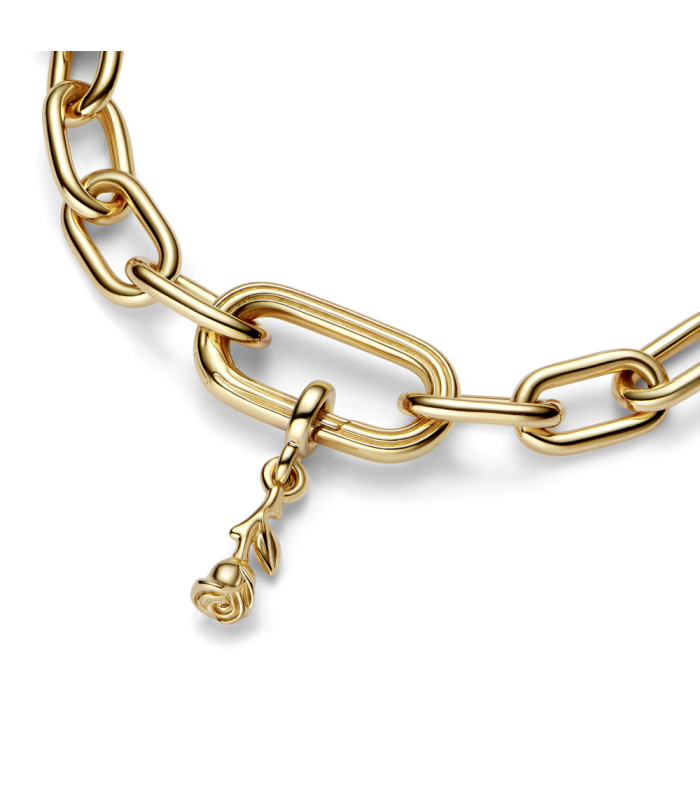 Lleva colgando tus pétalos con nuestro Mini Colgante Rosa Romance de Pandora ME. La rosa con un recubrimiento de oro de segunda ley de 14k cuelga del revés y se presenta con detalles realistas de pétalos, hojas y tallos. Este mini colgante se puede llevar en los conectores decorativos que se pueden abrir de Pandora ME en tus pulseras de cadena de links, collares, anillos y pendientes de aro. *Recuerda: Las joyas de Pandora ME sólo son compatibles con la colección Pandora ME.