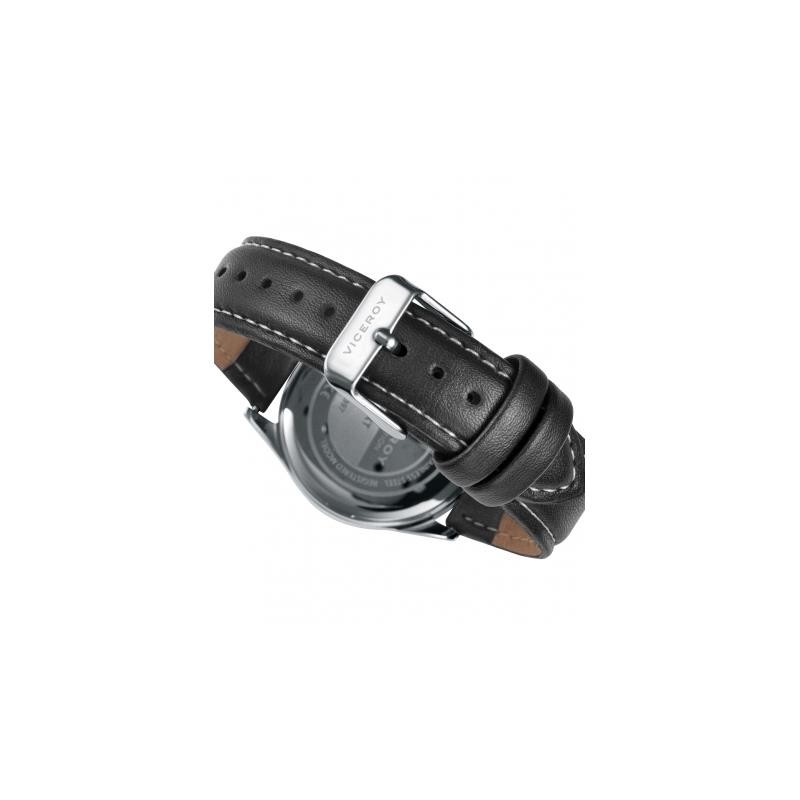 Reloj Viceroy para niño de la colección NEXT ideal como regalo de comunión. Se trata de un reloj de diseño atractivo y juvenil, cuenta con caja plateada de 33mm de diámetro con esfera negra en la que encontramos diales blancos y agujas movidas por mecanismo de cuarzo analógico protegido por cristal mineral. Su correa es de piel en color negra y posee cierre de hebilla. Resistente al agua hasta 30 metros.
