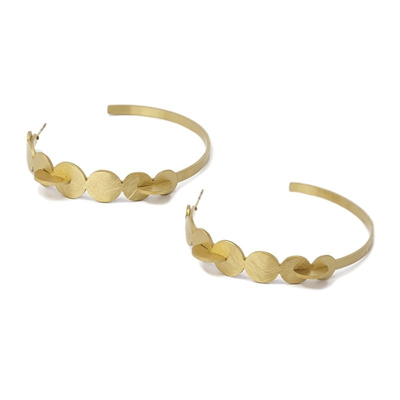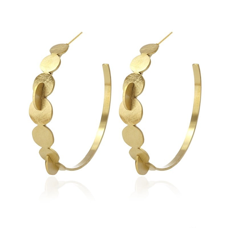 Pendientes Aros Círculos en acero chapado en oro matizado, acabados en cierre de presión. Tamaño 5cm