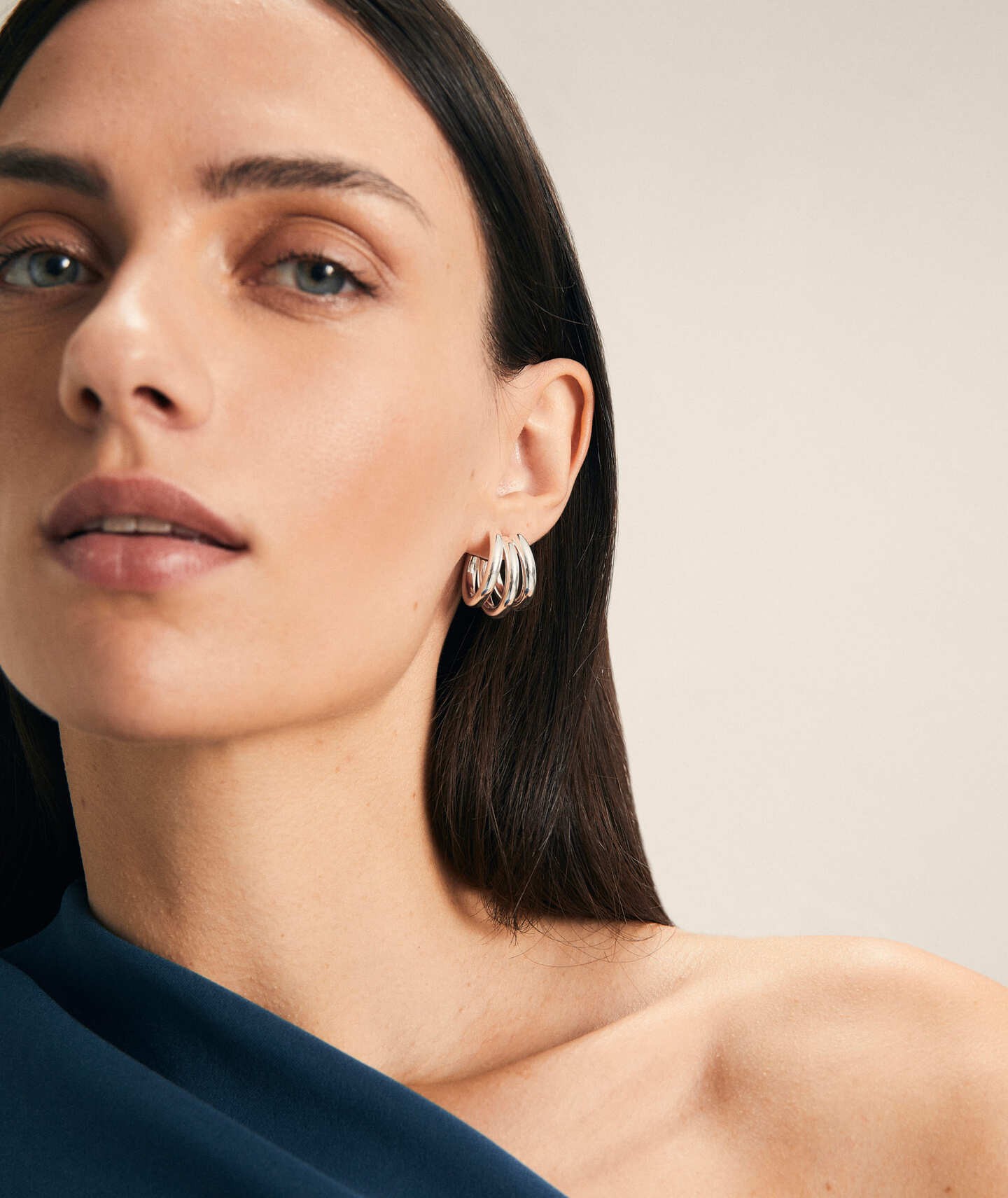 Pendientes Colección Essentials Chapado en Plata Aro triple diámetro 22 mm. Pendientes perfectos para lucir con tus looks de diario o para un evento especial.