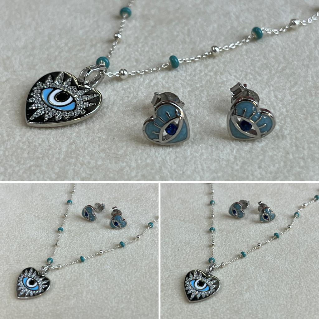 MUJER / PENDIENTES MUJER / Pendientes corazón con ojo de plata y esmalte