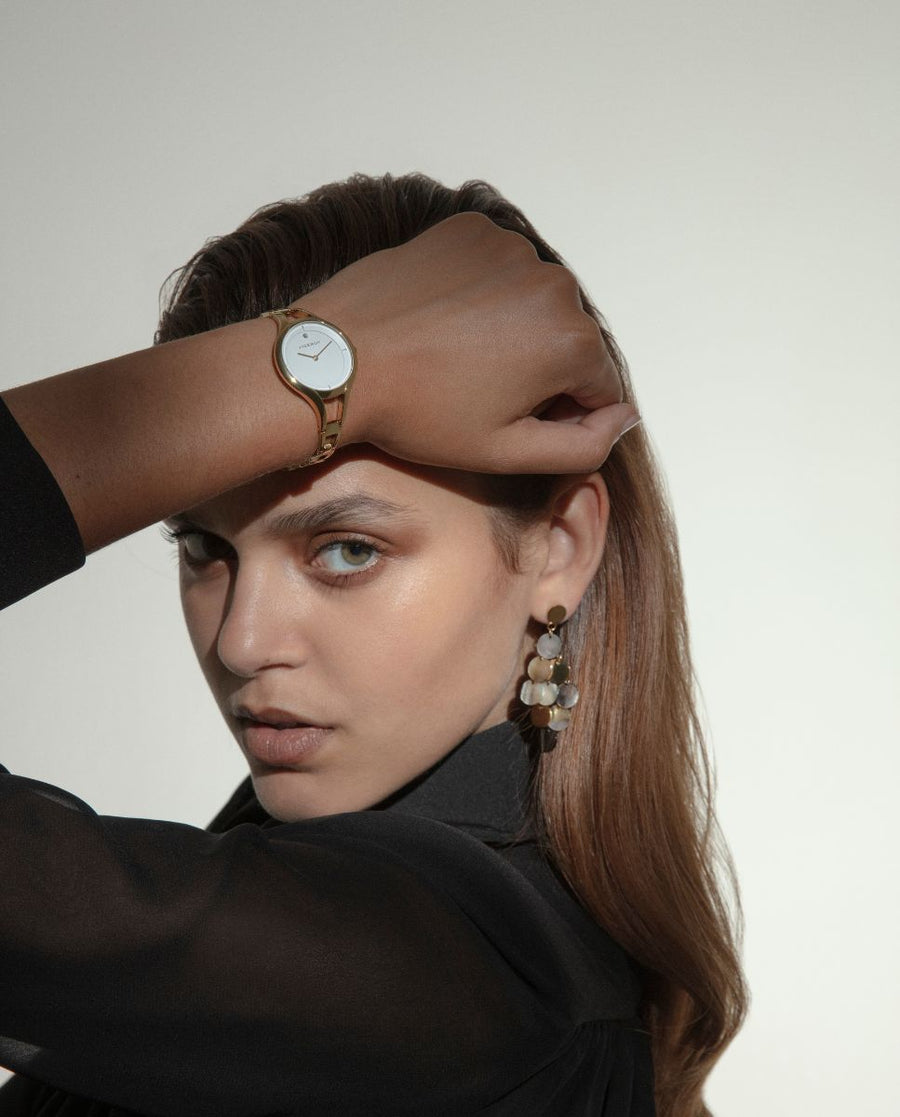 MUJER / COMPLEMENTOS MUJER / ACCESORIOS MUJER / Pendientes de mujer de acero Ip dorado y madre perla 14182E01012