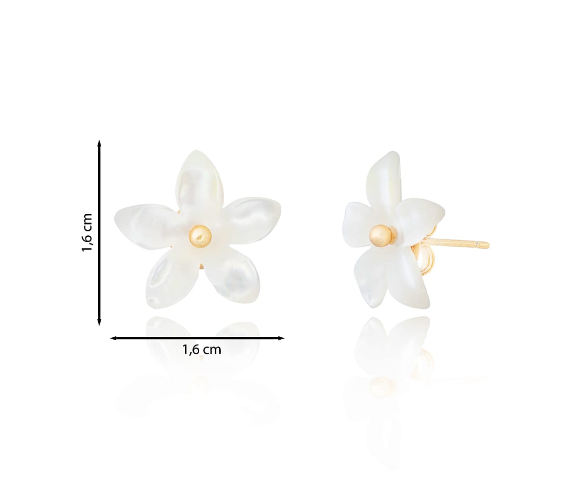 pendientes de nácar con forma de flor de jazmín y pistilo pequeño en plata de ley con baño de oro.