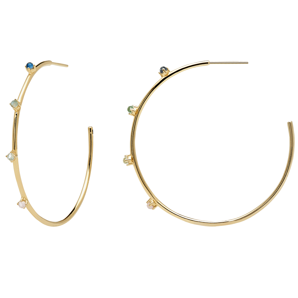 Aros PD PAOLA en plata de ley 925 bañada en oro de 18 quilates con circonitas de colores.
