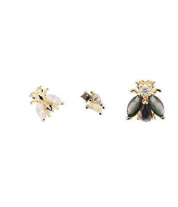 Pendientes P D Paola colección La Bamba compuestos por 3 pendientes en plata de ley añados en oro adornados con madre perla en gris y circonitas.