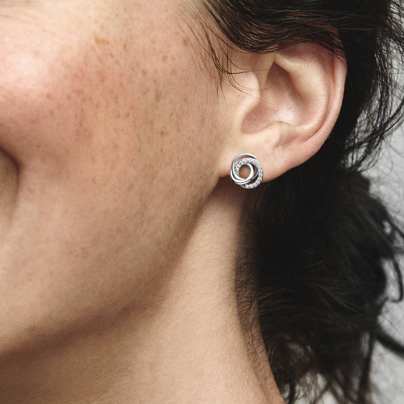 Pendientes Pandora de botón Círculo Familiar Siempre con circonitas cúbicas transparentes. La armonía de los distintos tamaños simboliza vuestra unión familiar a pesar de sus diferencias.