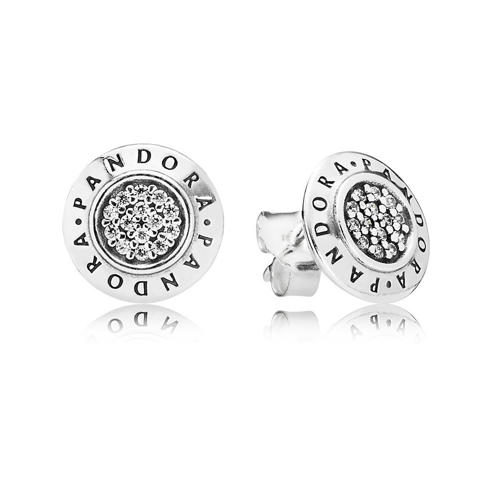 Pendientes Logo Pandora en plata de ley con 28 circonitas transparentes en pavé.