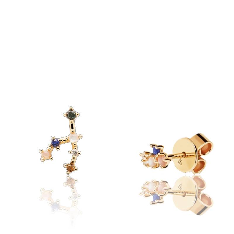 Pendientes PD Paola Constelación Tauro en plata de ley bañados en oro adornados con piedras naturales como cuarzo rosa, malaquita, labradorita, lapislázuli, ojo de tigre y circonitas.