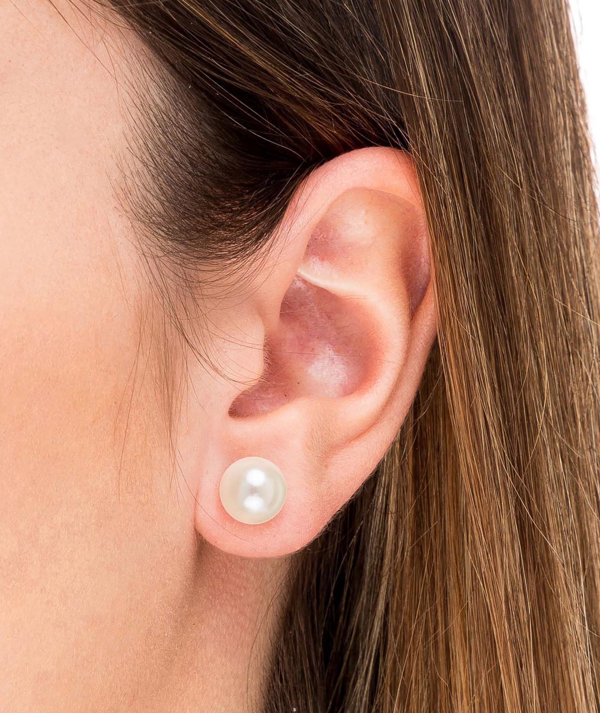 Pendientes Colección Essentials Chapado en Oro 18 Kt Perla 9 mm. Cierre presión. Elegantes y glamurosos. Estos pendientes completarán tus looks de fiesta favoritos.