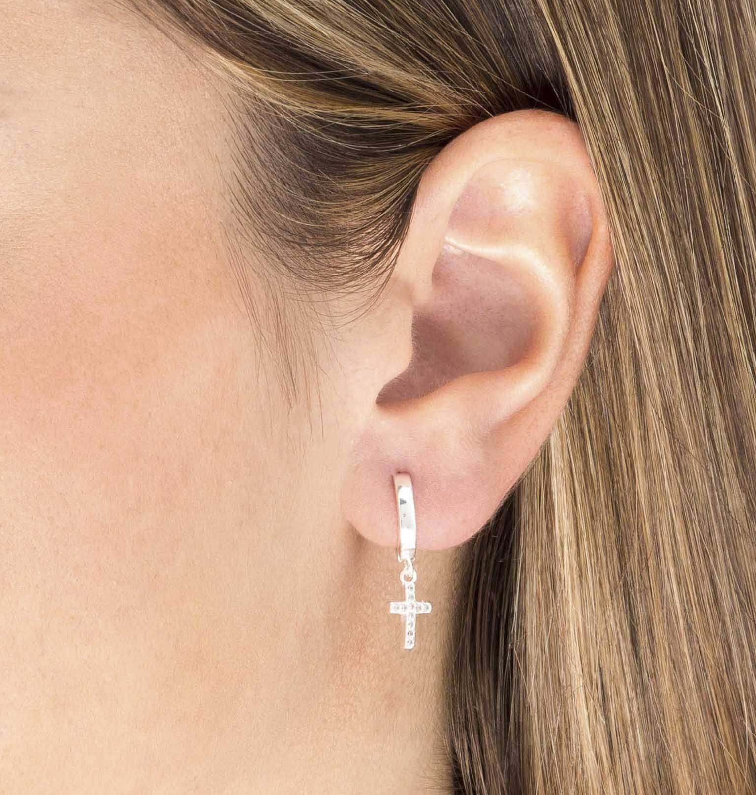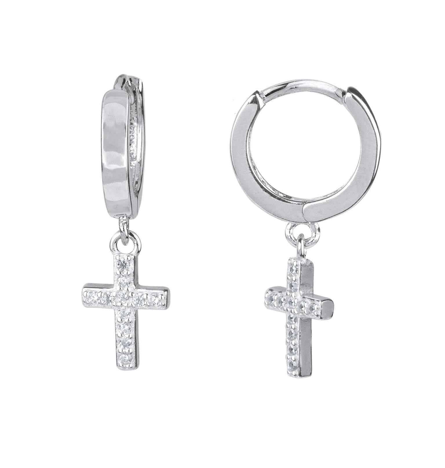 Pendientes Colección Essentials Plata 1ª Ley 925 de Aro articulado Cruz Colgante con circonitas.